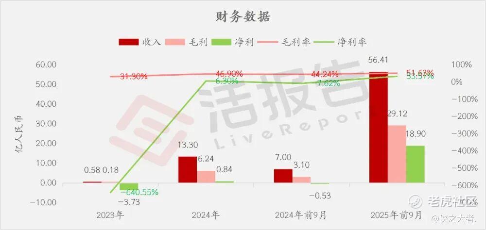 收入分别约为人民币0.58亿、13.30亿、7.00亿、56.41亿,2025年前9月同比+706.11%;