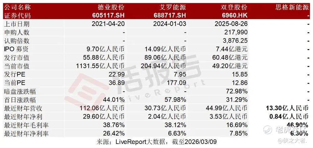 德业股份(605117.SH)、艾罗能源(688717.SH)、双登股份(6960.HK)