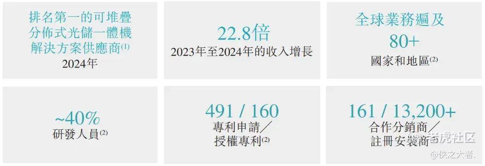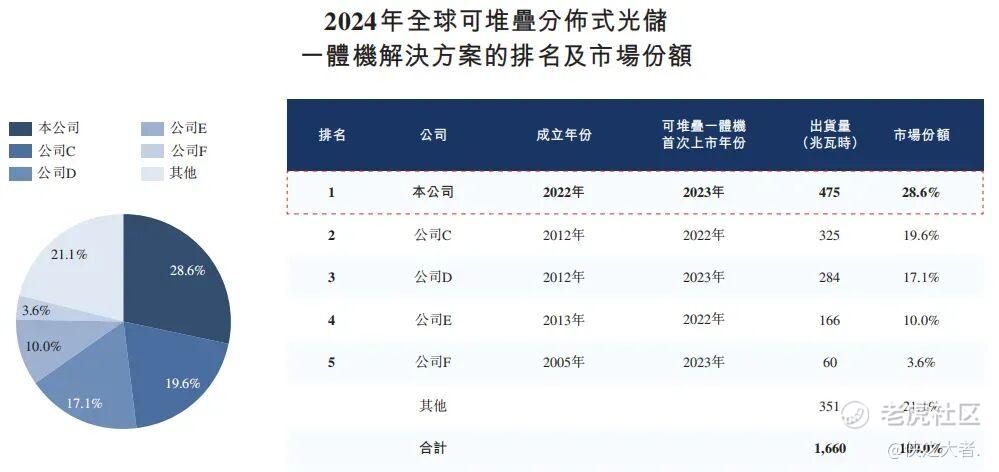 公司是分布式储能系统(DESS)解决方案领域的全球领先者。据弗若斯特沙利文报告,于成立两年后,按产品出货量计,公司已成为全球排名第一的可堆栈分布式光储一体机解决方案提供商,2024年的市场份额达28.6%,占同期分布式储能系统市场的0.6%及储能系统市场的0.2%。