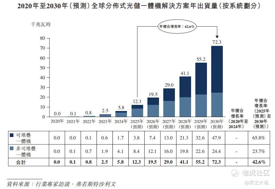 根据弗若斯特沙利文(Frost & Sullivan)的报告,2022年至2024年,全球可堆栈分布式光储一体机解决方案的出货量由0.1千兆瓦时增至1.7千兆瓦时。预计全球可堆栈分布式光储一体机解决方案的出货量于2030年达到47.9千兆瓦时,2025年至2030年的年复合增长率为65.8%。