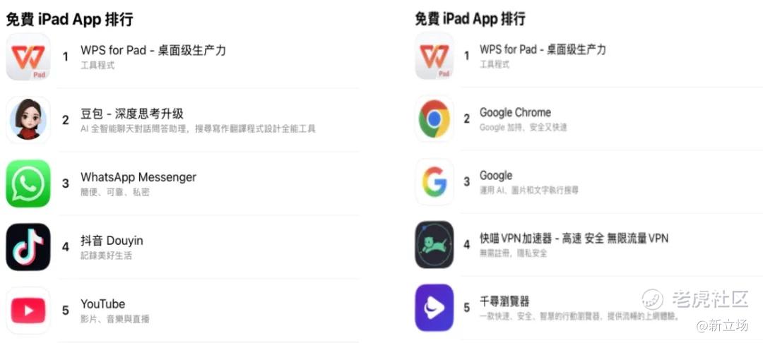 直到今年 3 月 9 日,情况终于有了变化。WPS for Pad 在大陆地区正式上线,当天就冲到了免费榜第一。而在更早上线的港区 App Store,它已经拿下了免费总榜和工具榜的双料第一,把豆包、DeepSeek、Grok 这些热门 AI 应用都甩在了身后。