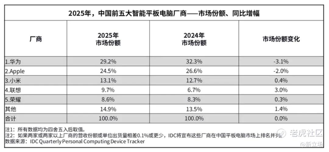 更早一步看到这个信号的,是国产厂商。**、小米等厂商率先在各自的平板产品上推进了桌面级 WPS,市场反馈相当直接——用户不仅接受,而且欢迎,IDC 数据显示,2025 年全年**以 29.2% 的份额蝉联中国平板出货量第一,而同期苹果份额从三年前的 33.6% 跌至 24.5%,持续走低。