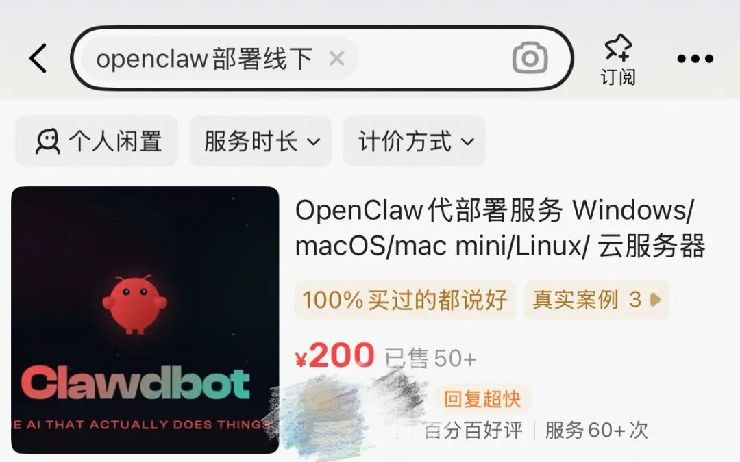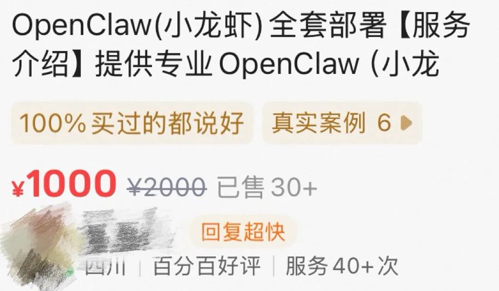 与OpenClaw热紧随而来的,必然是OpenClaw生意经,即线下代安装OpenClaw服务,“有人靠安装OpenClaw赚了26万”话题被推上热搜。据郭静的互联网圈观察,某二手物品交易平台上,“OpenClaw部署线下”服务非常火爆,某售价1000元的OpenClaw(小龙虾)全套部署商家显示已售30+,某售价为200元的OpenClaw代理部署商家显示已出售50+。