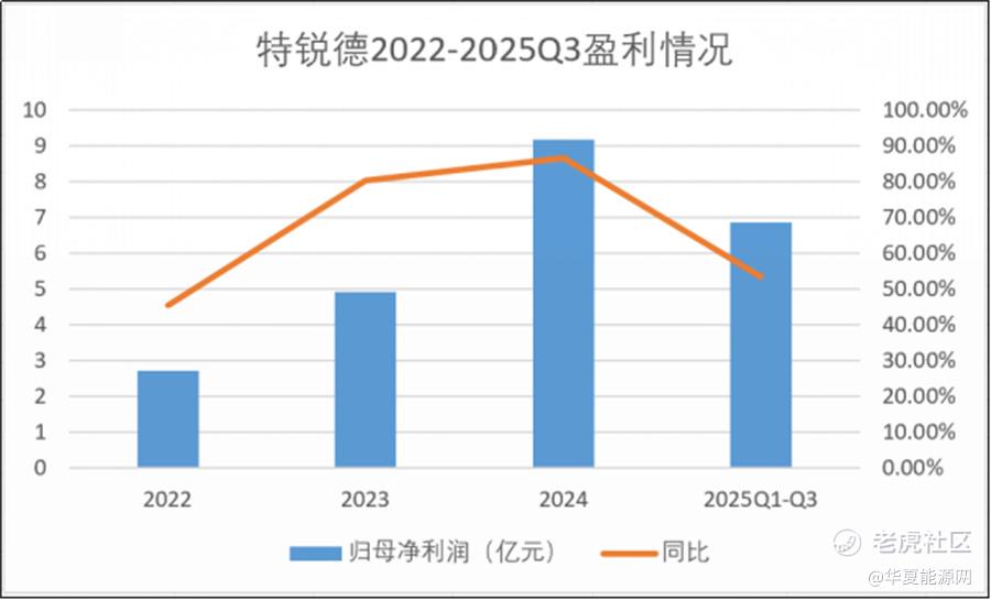 相比之下,母公司特锐德的业绩就要漂亮很多。华夏能源网注意到,2022年特锐德实现归母净利润2.72亿元,同比增长45.43%;2023年归母净利润4.91亿元,同比增长80.44%;2024年,归母净利润更是创下9.17亿元高点,同比增长达86.62%;2025年前三季度,特锐德又实现盈利6.86亿元,同比增长53.55%,再创业绩新高。