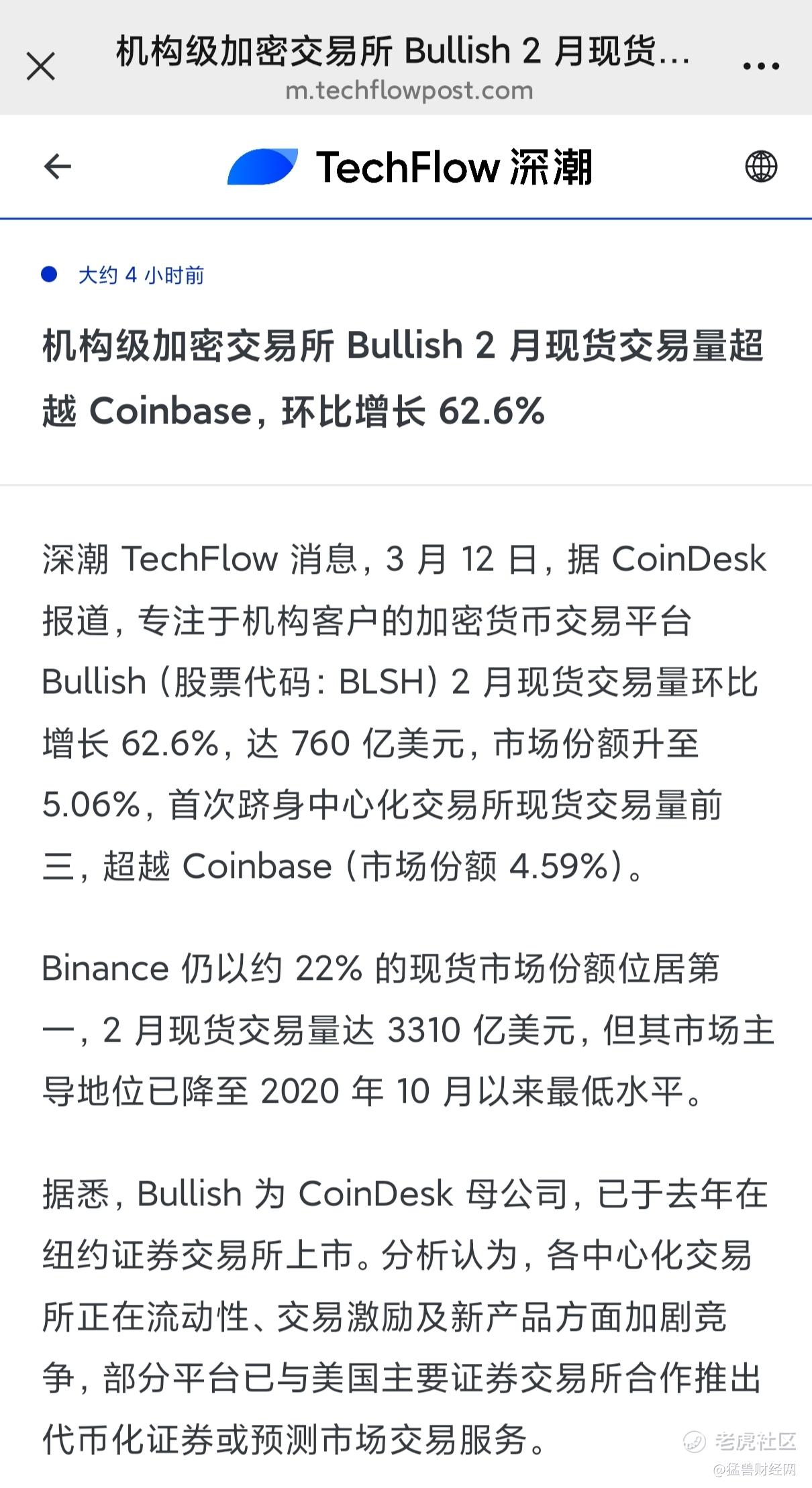 它的商业模式决定了它的现货交易量超过Coinbase是必然的,接下来会超过币安,成为全球第一