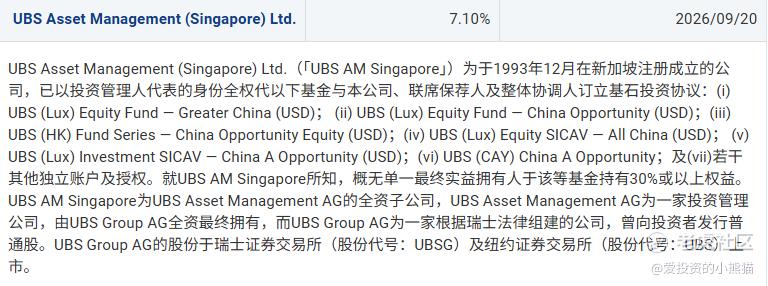 瑞银集团(UBS)在新加坡的资管平台,全球顶级资产管理机构之一,管理规模超1.2万亿美元,覆盖传统与另类资产,在亚太科技、高端制造领域布局广泛。