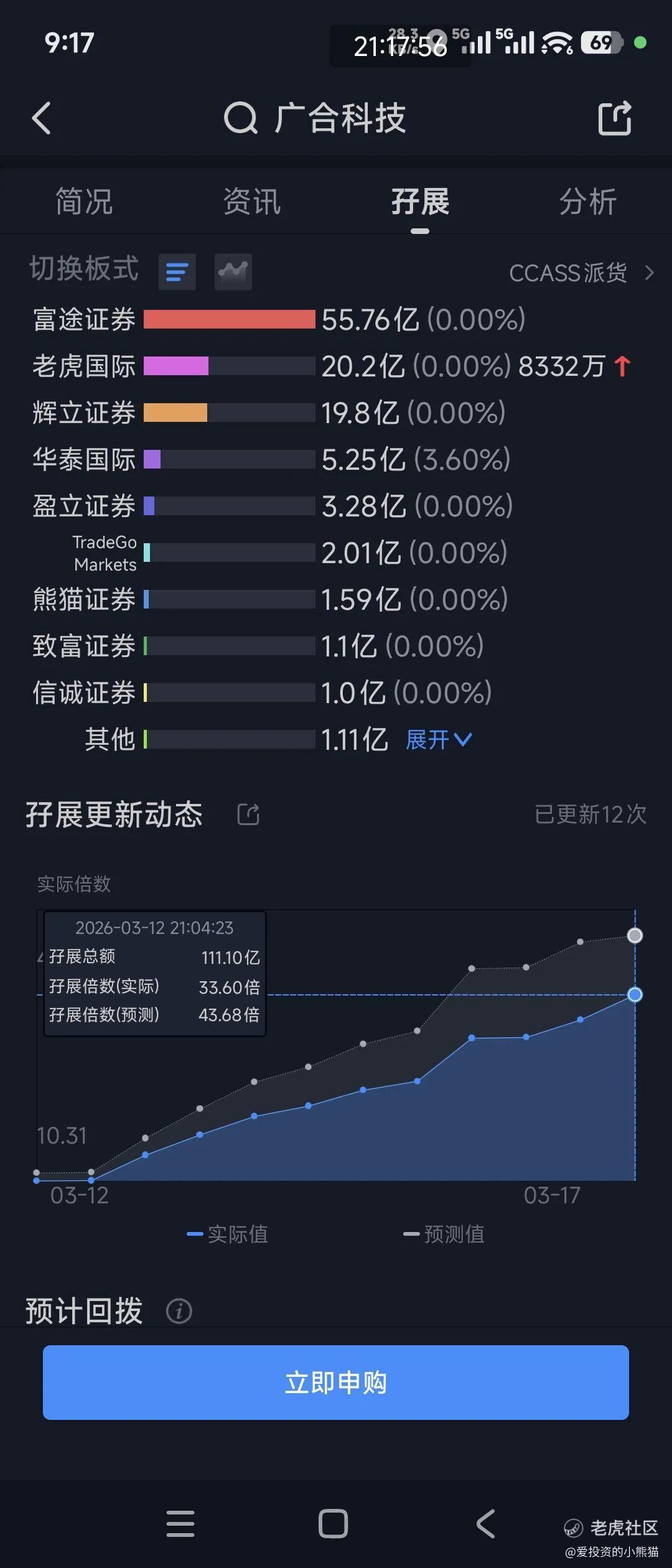 目前展现的孖展已超购33倍