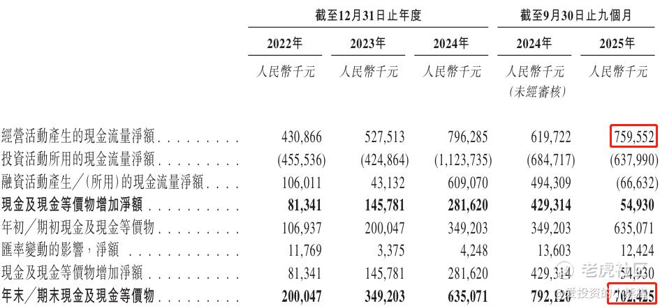 截至2025年9月30日,账上现金约人民币7.02亿元,经营现金流为7.60亿元。