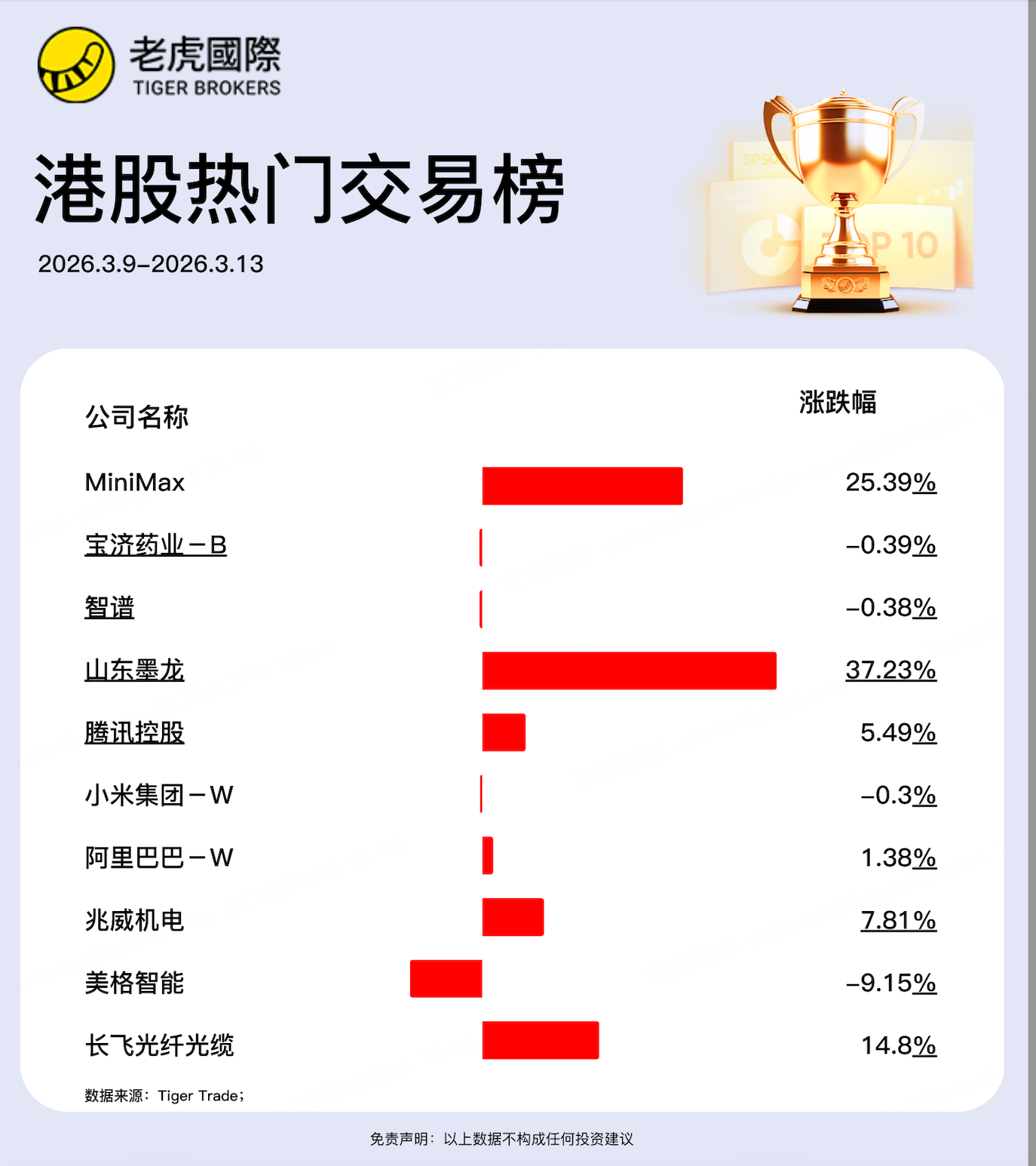 在油气和周期情绪带动下,资源链个股本周表现突出。山东墨龙大涨 37.23%,不仅是这 10 只高交易港股中涨幅最大的个股,也成为本周资金博弈最集中的代表之一,短线交易特征较为明显。