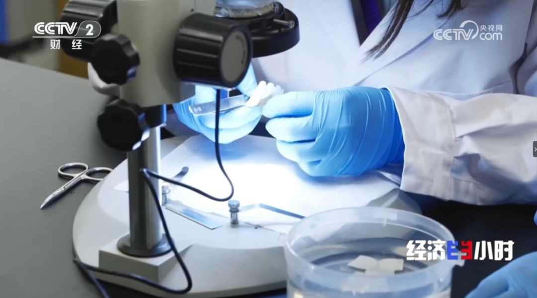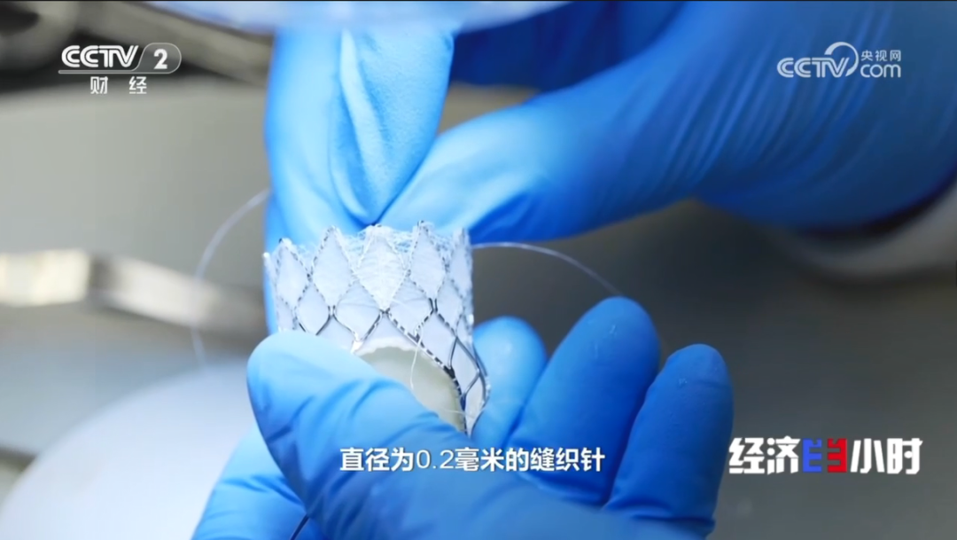 沛嘉医疗科技(苏州)有限公司研发副总裁仪克晶:我们找的是来自江南的绣娘,用比绣花针还细一半、直径为0.2毫米的缝织针,在显微镜下,用相当于一根头发丝的直径仅0.1毫米的线进行缝制。