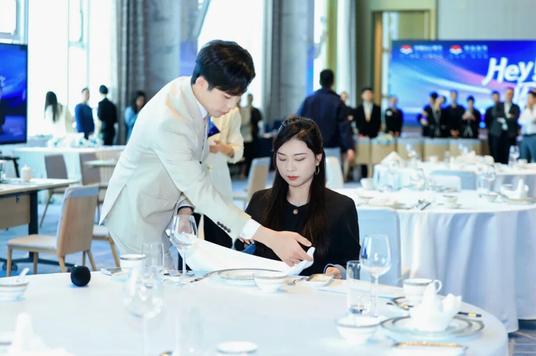 在定制物料展示区,各队呈现了专属设计的名牌、双语行程手册、特色礼品及融合地域文化与客户禁忌的定制菜单。从物料巧思到菜品设计,选手们以“场景适配+口味搭配+文化融合”的三重平衡,深刻诠释了高端商务接待中跨文化服务的专业素养与创新应变能力,展现了卓品商务礼宾团队对标国际一流水准的接待实力。