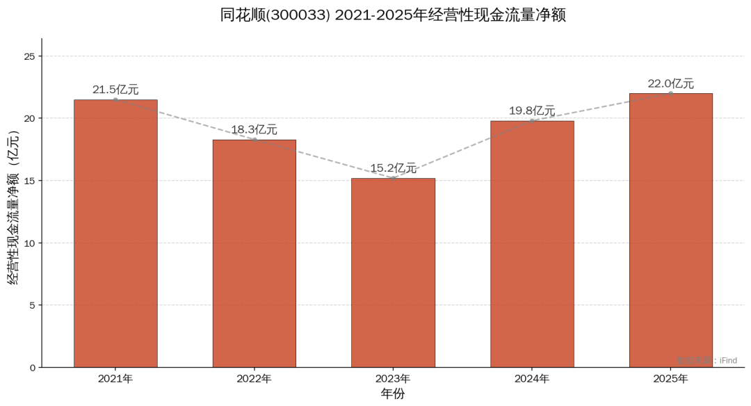 从2021年的21.50亿元,经历2022年和2023年的连续下滑,2023年跌至15.20亿元的最低点,再到2024年强劲反弹至19.80亿元,2025年创下22.00亿元的5年新高。