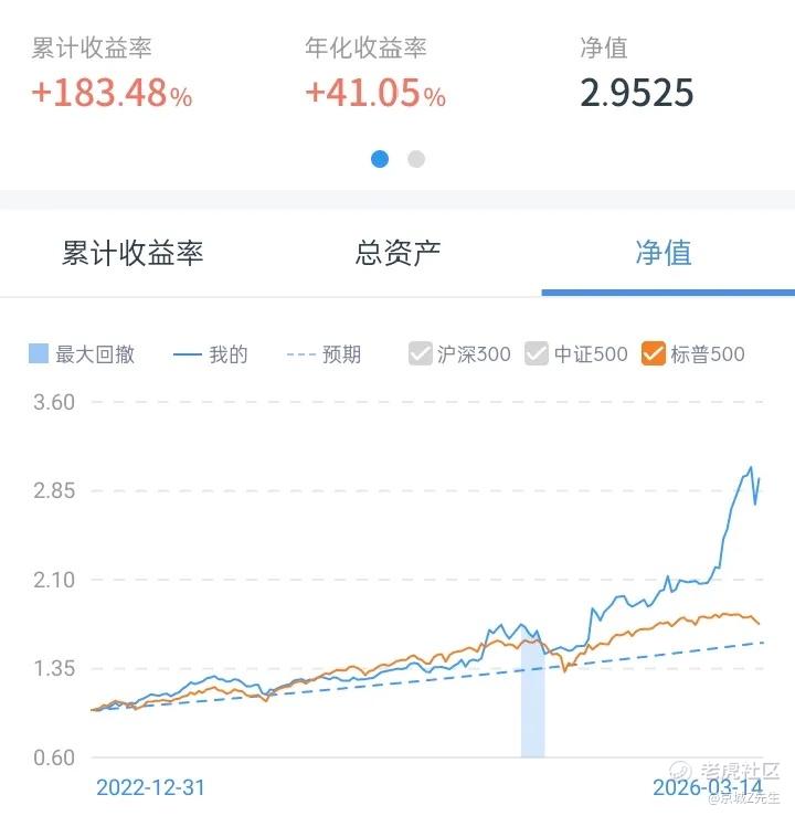 2026 年内标普 500 指数 下跌 3.12%,2026 年内我的实盘净值 上涨 34.30%(年初净值为2.20,本周净值2.95)。