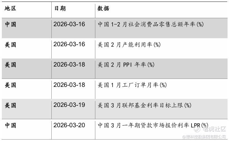 本周经济数据继续显示中国经济“开门红”效应,尤其是出口仍然保持亮眼。我们将继续重点关注房地产及消费领域的进展,以确认“开门红”是否具有持续性。地缘政治方面我们继续密切关注特朗普访华行程及中国对中东摩擦的态度及行动。通胀方面,我们认为当前上游通胀高企,有机会继续传导,因此认为今年或许供给端通胀将抬头。但由于两会政策仍然偏向保守托底,我们预计需求端将继续保持相对疲软,因此建议投资者继续关注业绩具有确定性的优质股,避免投机。