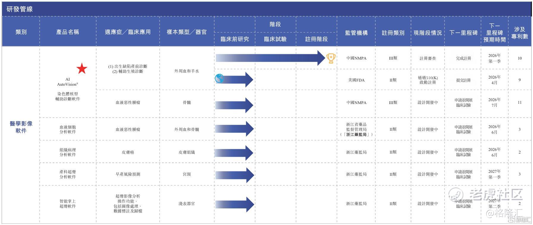 目前,公司聚焦高壁垒医学影像AI设备、配套软件及试剂耗材的研发、生产与商业化,搭建起覆盖设备、软件到耗材的全链条产品矩阵。值得一提的是,核心产品AI AutoVision®染色体核型分析辅助诊断软件,不仅斩获国家药监局三类创新医疗器械认证,更是近年国内首个获批的医学影像AI辅助诊断软件。临床试验数据显示,AI AutoVision®将染色体结构异常识别准确率提升至99.86%(其中数目异常检测双100%,结构异常灵敏度94.05%、特异度100%)。相比德国蔡司、莱卡等百年光学巨头的同类产品,该产品仅用3年时间便打破该领域国际垄断,在中国染色体核型分析领域市占率达30.6%,稳居行业第一,临床应用价值与诊疗效率优势突出。