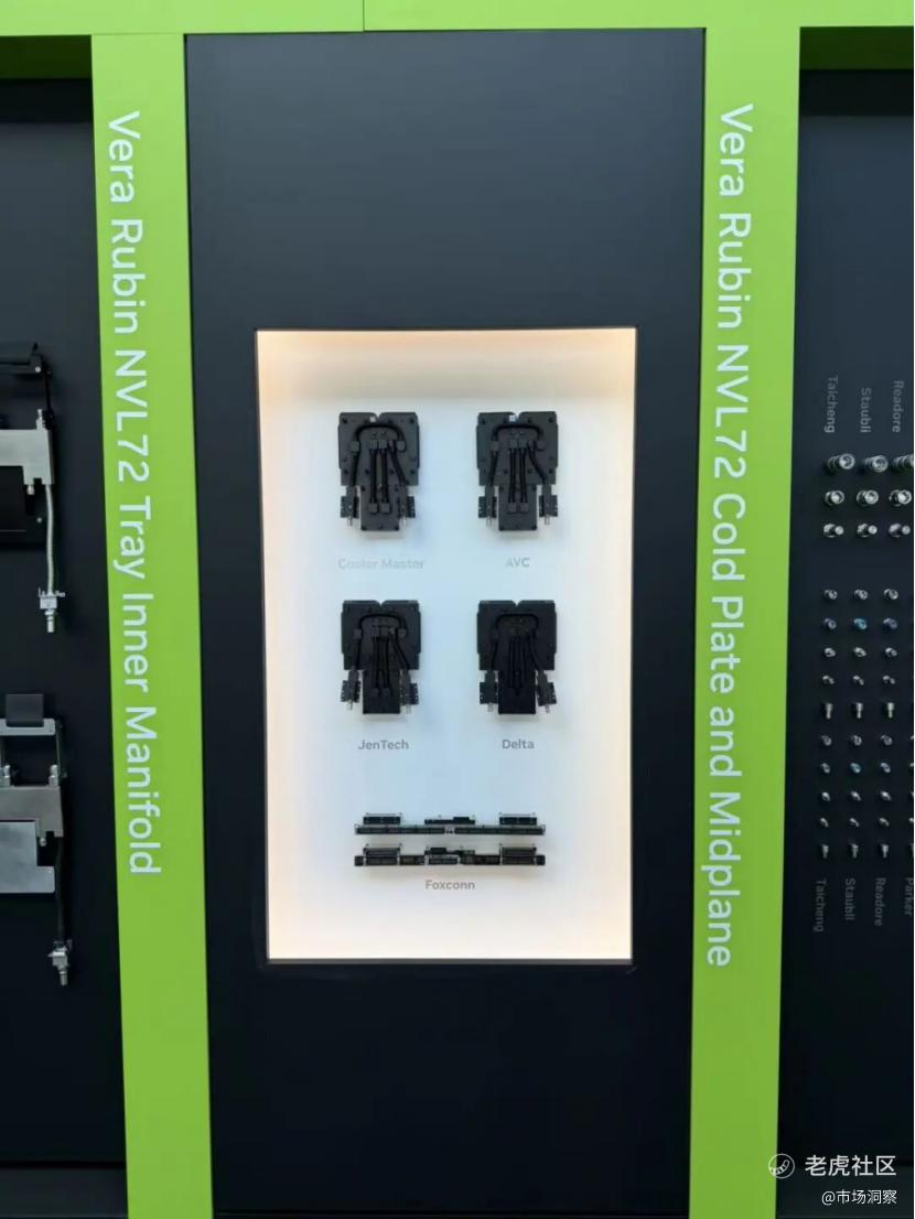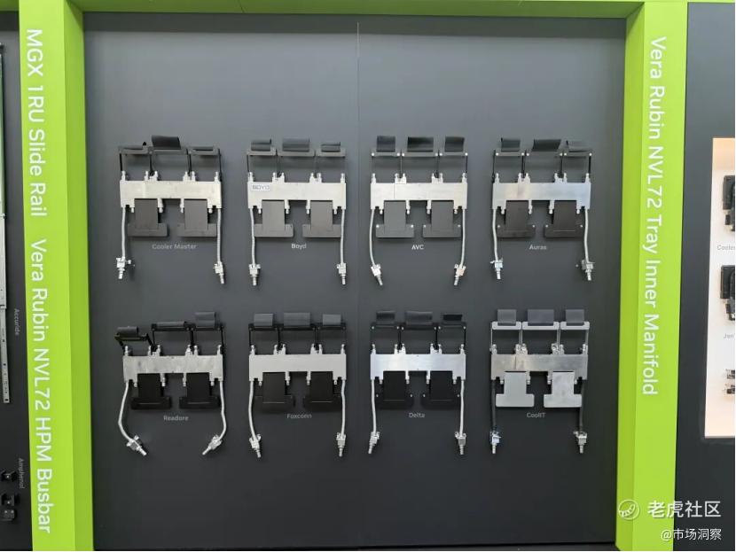 在Rubin的冷板部分,今年GTC大会首次仅公布四家冷板供应商分别是Coolermaster讯强,AVC奇宏电子,Delta台达电子,Jentech台湾建策,Jentech台湾建策是本轮Rubin新入围的供应链。除了展出这四家以外,目前还有Readore立敏达(领益智造控股),CoolIT,富士康三家供应商,预计将会在6月台湾的Computex展出。目前Readore立敏达(领益智造控股)也是中国大陆唯一一家拿到Code的供应链。