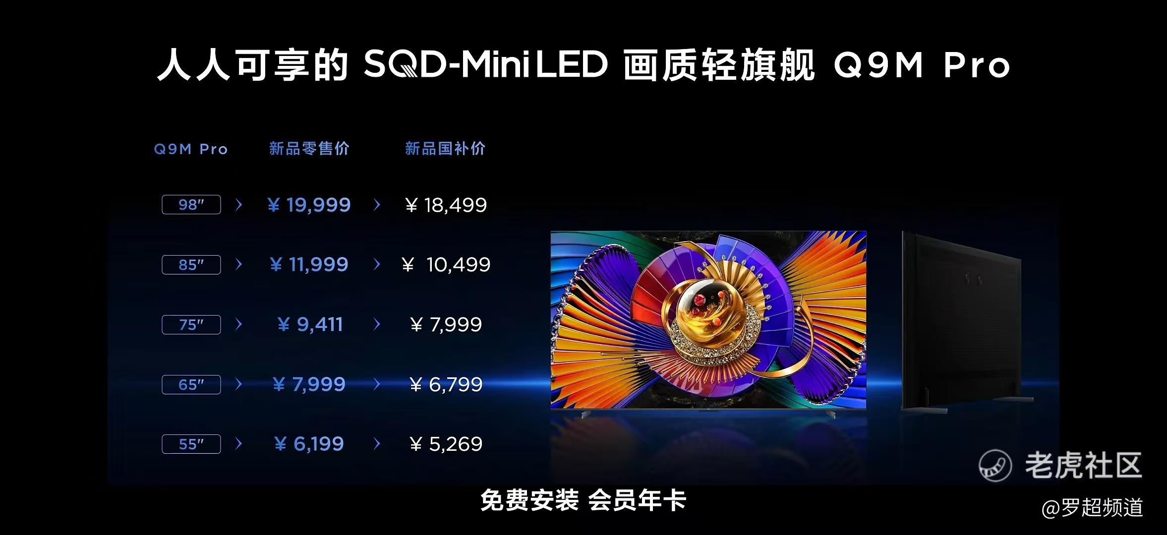 价格方面,TCL Q9M Pro起售价6199元,国补价5269元。对一款大尺寸高画质SQD-Mini LED电视来说,这个价格相当有竞争力。而且5000元是非常甜点级的大尺寸电视价位,TCL的这款新品估计能吸引到不少人。
