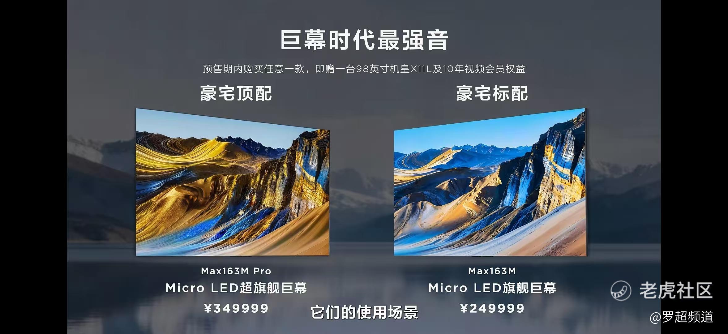 值得一提的是,除了以上两款SQD-Mini LED电视,这场发布会上TCL还带来了两款Micro LED电视,这就是妥妥的秀肌肉了。它们分别是TCL Max163M和TCL Max163M Pro,均为163英寸巨屏,价格分别为249999元和349999元,主打豪宅场景。它们的峰值亮度、分区数量远超常规Mini LED电视,显示效果也是一骑绝尘。