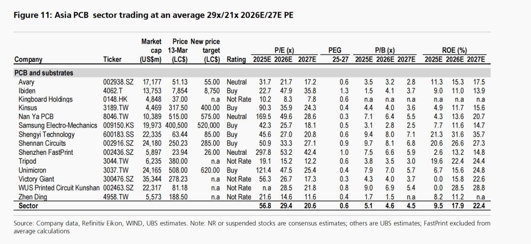 相比AI贡献来自更下游环节的公司(如兴森科技和鹏鼎控股),我们更偏好生益科技(SYT)等上游公司,以及涉及基板业务(深南电路)或在关键客户已有AI业务布局的公司。
