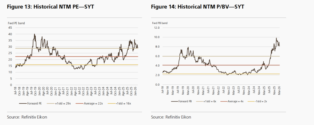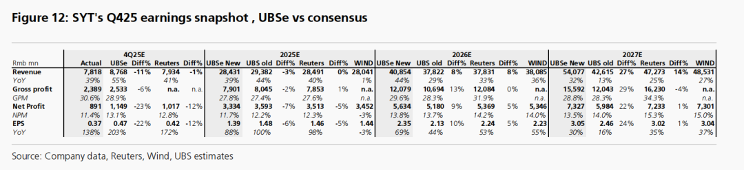 更多相关个股,瑞银测算未来几年业绩增速和估值变化如下:
