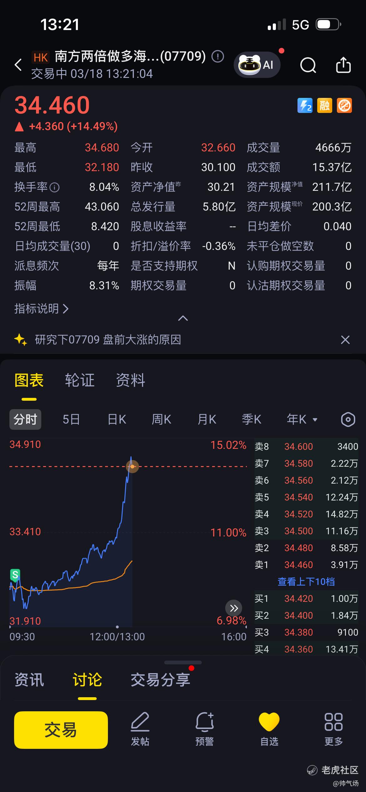 $南方两倍做多海力士(07709)$