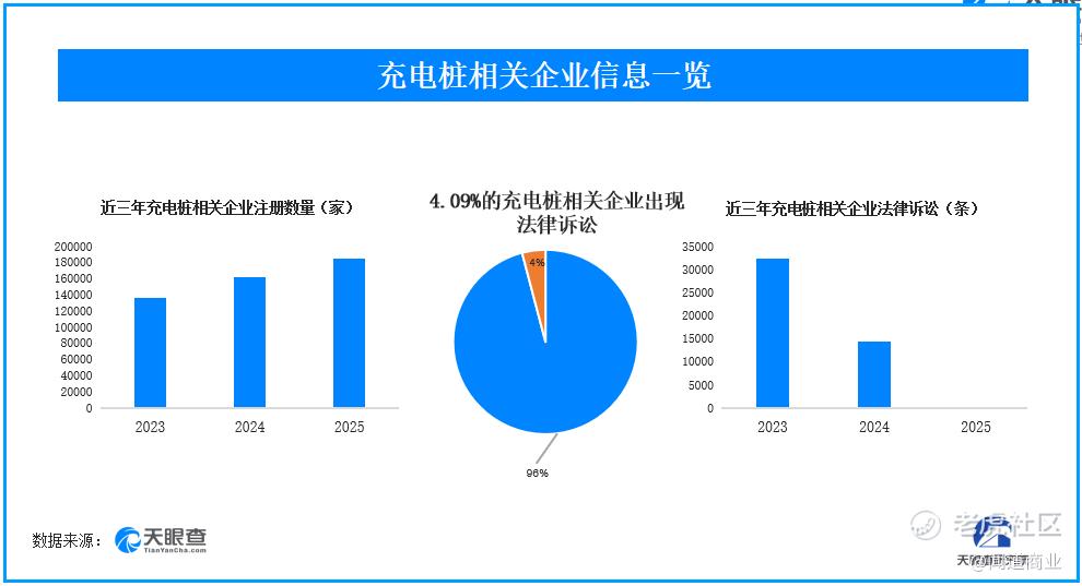 天眼查天眼风险显示,从事充电桩相关的业务企业中,4.09%的相关企业曾出现法律诉讼,0.81%的相关企业曾出现经营异常,1.43%的相关企业曾出现行政处罚。据天眼查深度风险数据显示,0.18%的相关企业出现被执行人信息。