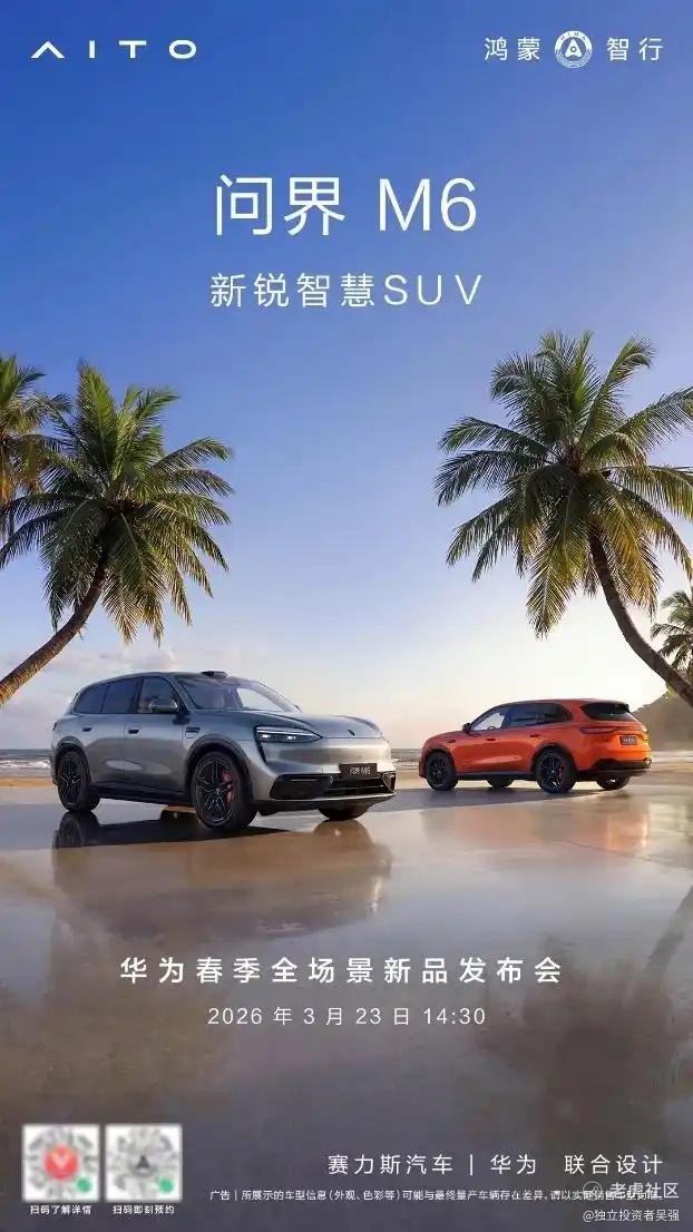 3月23日,问界M6即将开启预订,问界M7、M8车型将同步完成焕新升级。这也意味着问界系列产品矩阵进一步完善,市场竞争力持续增强。