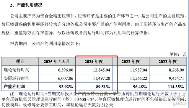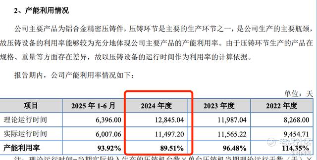 招股书数据显示,公司产能利用率从2022年的114.35%(超负荷生产),降至2023年的96.48%,2024年进一步降至89.51%,呈现持续下滑趋势。2025年上半年,产能利用率虽小幅回升至93.92%,但仍未达到满产状态。