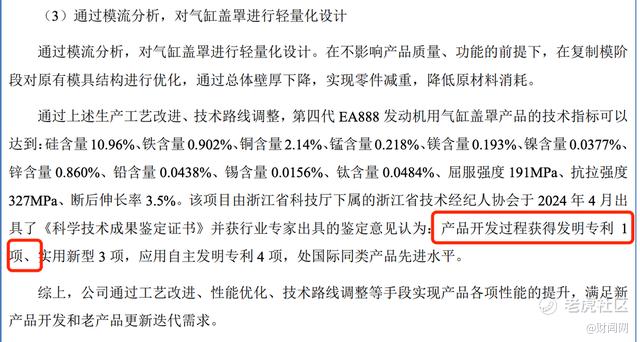 首先是研发投入不足,核心技术缺失。报告期内,安达股份研发费用率长期低于同行业平均水平,2020年至2025年,公司仅取得1项发明专利,其余均为实用性专利与外观专利。而新能源汽车铝合金压铸件,需要高强度、轻量化、高精度的核心压铸技术,对研发能力要求极高,公司仅有的1项发明专利,根本无法支撑新能源业务的技术需求,其新能源产品大多采用行业通用技术,无核心竞争力,极易被替代。