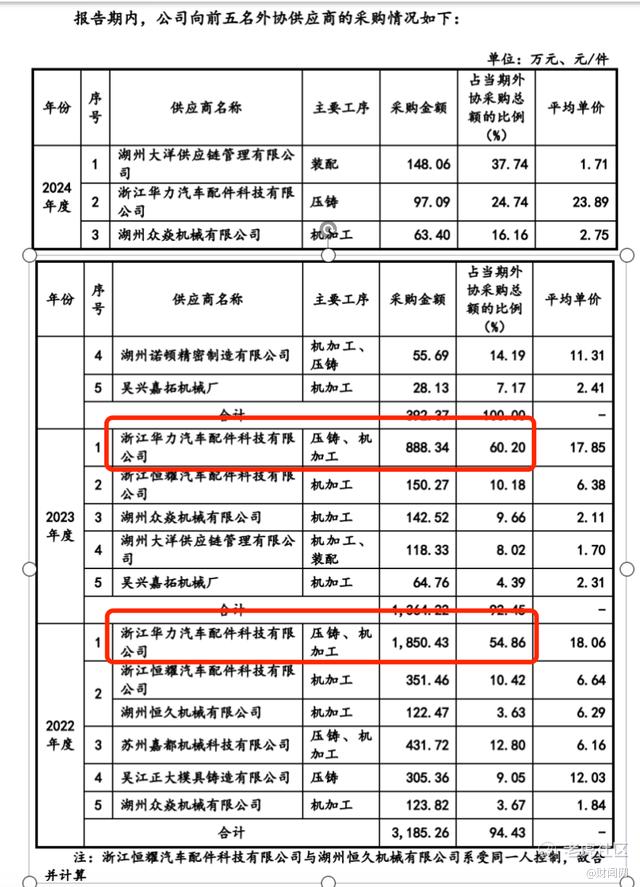 公司向关联外协供应商的采购价格,与非关联供应商相比无明显优势,且关联供应商交易占比过高,不符合市场化采购逻辑,被质疑通过外协采购向关联方转移利润。2023年起公司向华力汽配的采购金额从1850.43万元骤降至888.34万元,2024年降至97.09万元,2025年上半年直接归零,这种极端波动并非正常业务调整,而是迫于IPO审核压力的被动清理。