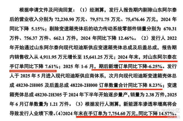 2025年5月安达股份虽获得现代坦迪斯直接供应商认证,但2025年上半年对山东阿尔泰、现代坦迪斯的销售收入同比下降6.32%,期后新增订单同比下降6.25%,2024年末在手订单同比下降14.57%。这意味着,即便成为直接供应商,公司对现代汽车的供货订单也在持续下滑,三角交易带来的业绩增长完全不可持续。