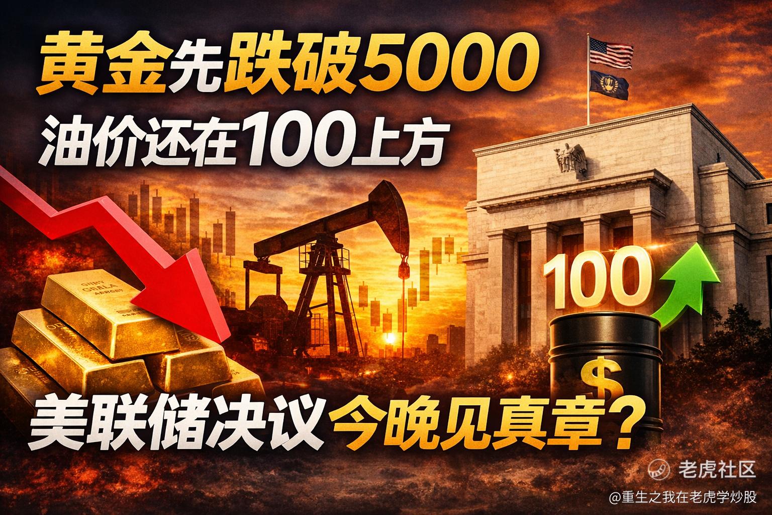 我现在最关心的,是今晚之后三样东西怎么走:一是布油还能不能继续站在100美元上方不下来;二是黄金跌破5000之后能不能重新站回去;三是美联储会不会把市场最后那点“还能降”的幻想也拿走。 所以后市到底怎么走,今晚凌晨两点见。