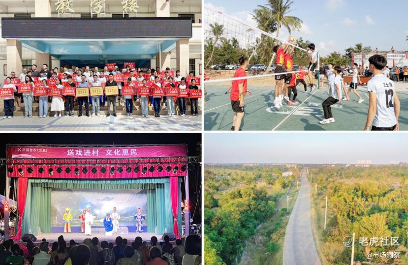 民生与文化建设方面,项目捐资修建排球场、捐赠太阳能路灯,改善村民生活出行条件;传统佳节开展慰问送温暖,赞助琼剧演出、乡村排球赛事等文体活动,丰富乡村文化生活,提升村民幸福感,实现产业发展与美丽乡村建设同频共振。