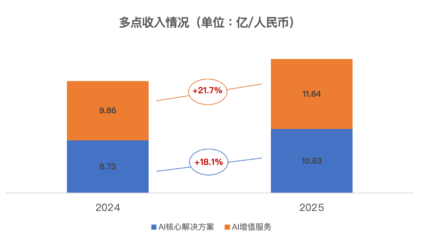如果说过去两年AI更多停留在产品层面,这一份财报开始体现的是,AI正在进入公司的收入结构与盈利能力,现在的多点更像一家AI Agent公司了。