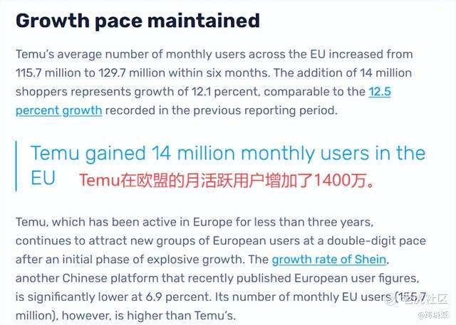 Temu欧洲新增了1400万月均用户 图源:ecommerce news