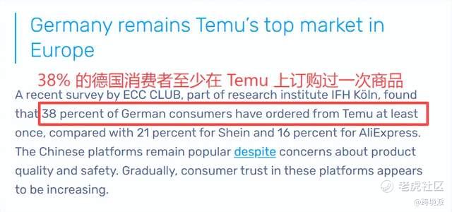 38%的德国消费者曾在Temu上消费 图源:ecommerce news