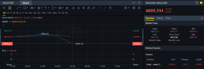 目前价格回到4800美元附近,短期是利率预期重新定价的结果。但如果把周期拉长来看,今年以来金价仍有明显涨幅,背后是地缘冲突持续、全球能源价格抬升,以及市场对货币政策不确定性的重新定价。