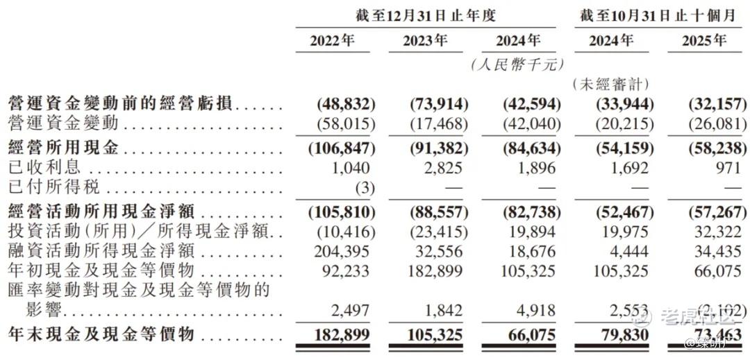 2022-2025年前10个月,公司经营活动现金流持续净流出,截至2025年10月末,账面现金及现金等价物仅7,346.3万元,短期偿债压力较大,亟需依赖IPO募资补充流动资金。