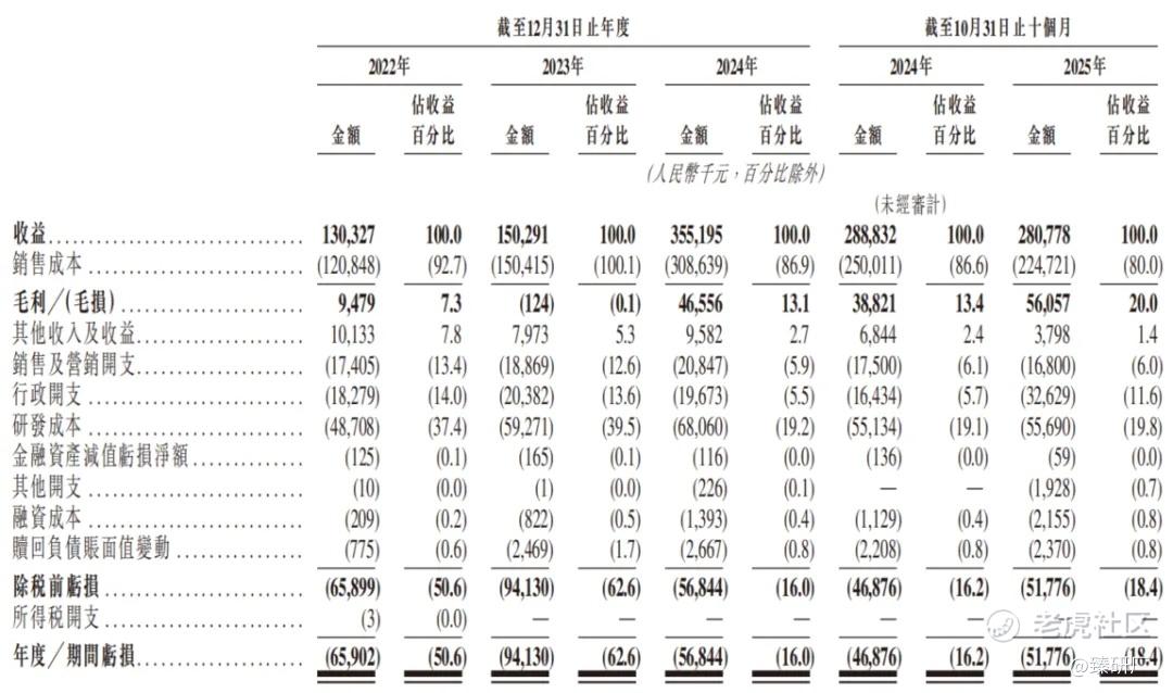 亏损方面,尽管公司仍处于净亏损状态,但亏损幅度持续收窄。2024年净亏损同比收窄39.6%,净亏损率已由2022年的50.6%收窄至2025年前10个月的18.4%,主要得益于毛利率的提升以及营收规模扩大对研发费用的摊薄作用。