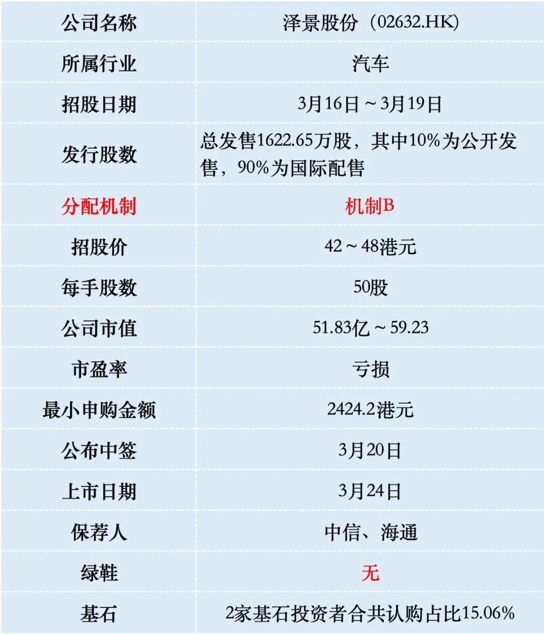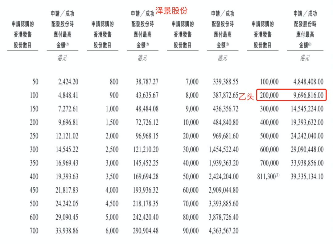 泽景股份目前孖展5倍,最终大概率会超购100倍,甲乙组各16226手。申购人数按照3万人算,预估一手中签率20%,申购100手稳中1手。