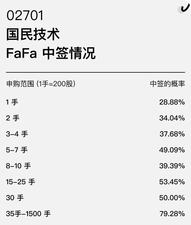$国民技术 (02701.HK)$ 一手中签率将近30%,但是甲尾也就才中2手,(红鞋启动)货都分给大家了,乙头稳15手。 我没认购,看大家喝汤还是吃肉。