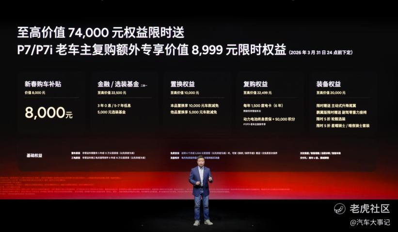 2026年3月18日,小鹏「爱 P7 的鹏友大聚会」圆满收官!此次发布会,小鹏P7带来了星曜红、暗夜黑、星云白三款全新外观色,并搭载小鹏最新的第二代VLA,让智能驾驶体验再升级。同时,小鹏P7新增Max、Ultra SE两大版本。小鹏P7官方指导售价20.38万元起。