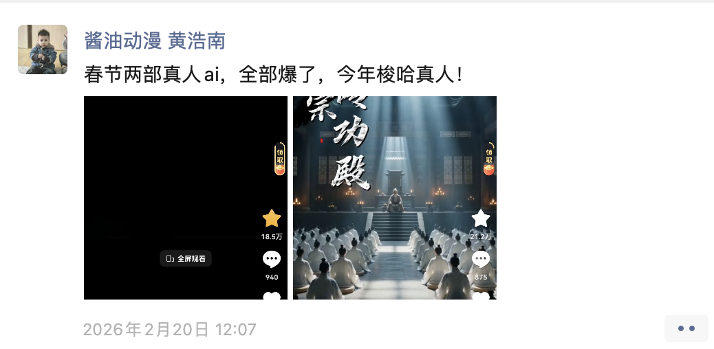 一家做漫剧的公司当天就决定裁掉负责分镜的导演,降本增效;春节期间,一位从业者本想趁着闲时体验下Seedance2.0的能力,结果与正在排队的两万余人撞个正着,即便他买了最高级别的会员,也还得等上三小时才行;Seedance2.0的价格是竞品的2-3倍,但付费的企业蜂拥而至——足够高的效率可以抵消成本的高昂。