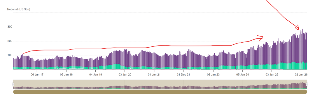 在2025年最后一个月黄金的沉淀资金增加,大概是过去7-8年的量