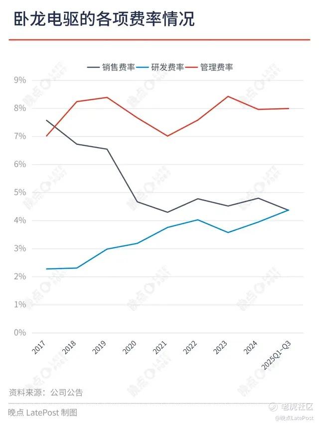 为了持续巩固这一先发优势,卧龙正在尽力提升其研发支出的力度,但受限于管理费用的支出刚性,其进一步提升研发力度的空间有限。
