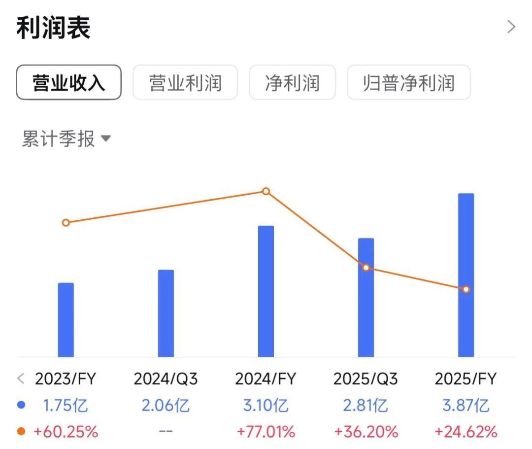 收入分别约为人民币1.09亿、1.75亿、3.10亿、2.06亿、2.81亿,2025年前9月同比+36.20%;