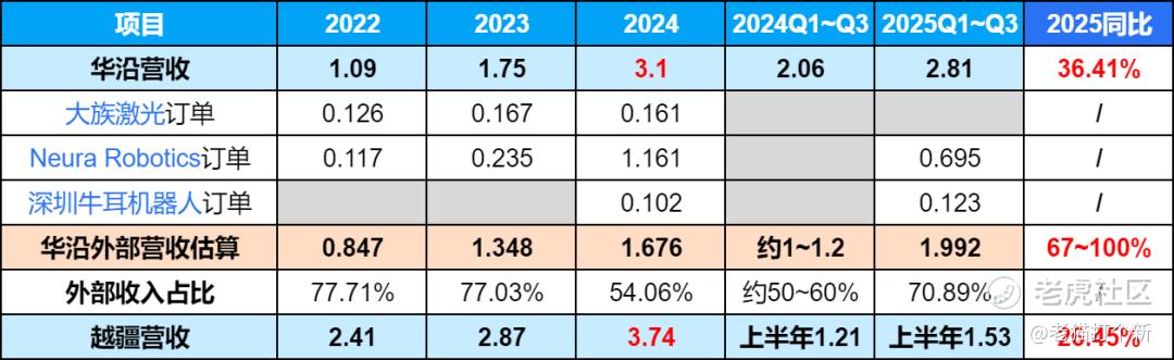 其实华沿的增长还是很强的,我剔除掉五大客户里大族系列的订单(大族激光、德国牛耳、深圳牛耳)后,整体还是持续增长的状态,25年同比36.4%,外部估算的话同比能超60%。