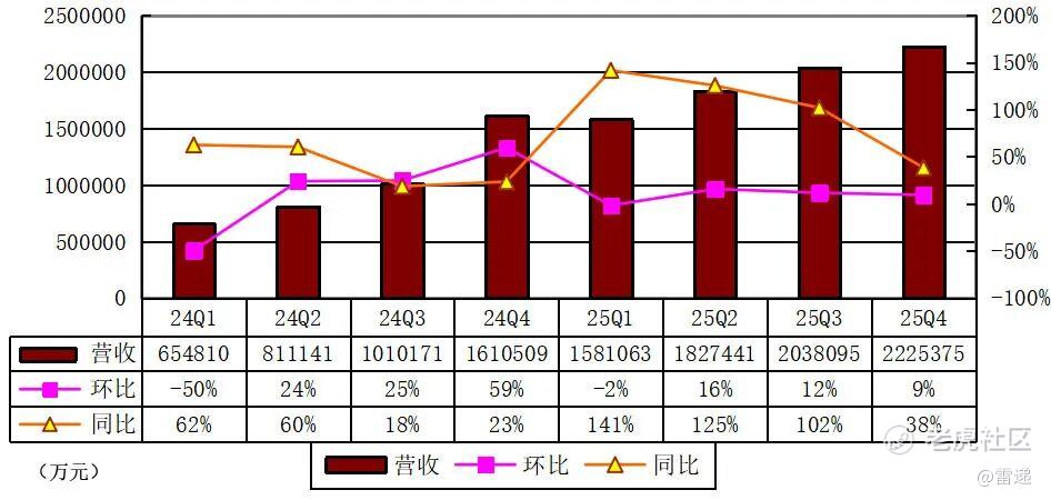 小鹏汽车2025年第四季营收222.5亿(31.8亿美元),较2024年同期的161.1亿增长38.2%,较2025年第三季度的203.8亿元增长9.2%。