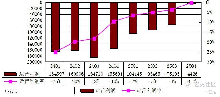 小鹏汽车2025年第四季度运营亏损为4426万元,运营利润率为-0.2%。