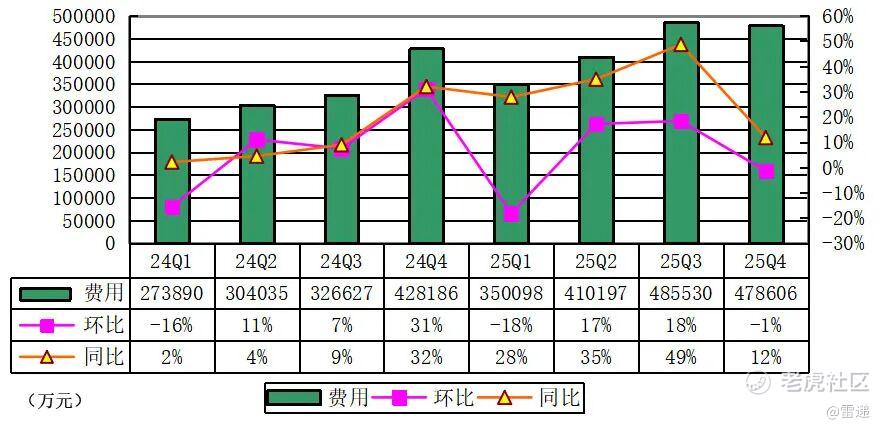 小鹏汽车2025年第四季度费用47.8亿,较上年同期的42.8亿元增长12%。